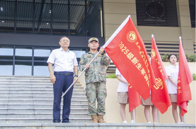 在全体师生的注视下,朱光应向军训团郑重授旗。旗帜交接的那一刻,教官身姿挺拔、斗志昂扬,也令新生对即将开始的军训生活充满期待。