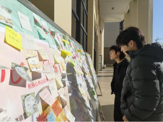 活动现场,“优势品格墙”展示了诚信、勇敢、善良、坚持等24种积极心理品质师生们纷纷领取彩色贴纸,写下自己或身边人的品格闪光点——有对同学热心帮衬的真诚感谢,有对自己攻克难题的成长认可,还有对老师耐心指引的暖心记录,每一行文字都饱含真挚情感。写完后大家亲手将贴纸粘贴上墙逐渐贴满品格墙吸引了众多师生驻足品读参与。