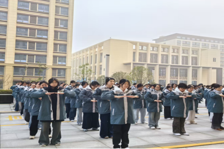 作为医药卫生特色校,学校始终秉持“健康第一”的育人理念,积极探索中华优秀传统文化与日常教学深度融合的路径。八段锦作为国家级非物质文化遗产,具有调理脏腑、强健体魄、舒缓身心的多重功效,尤其适合长期伏案学习的学生日常练习。通过早操形式的推广,不仅帮助学生调整作息、增强身体协调性,更引导大家在练功中感悟传统养生智慧,涵养科学健康的生活态度。