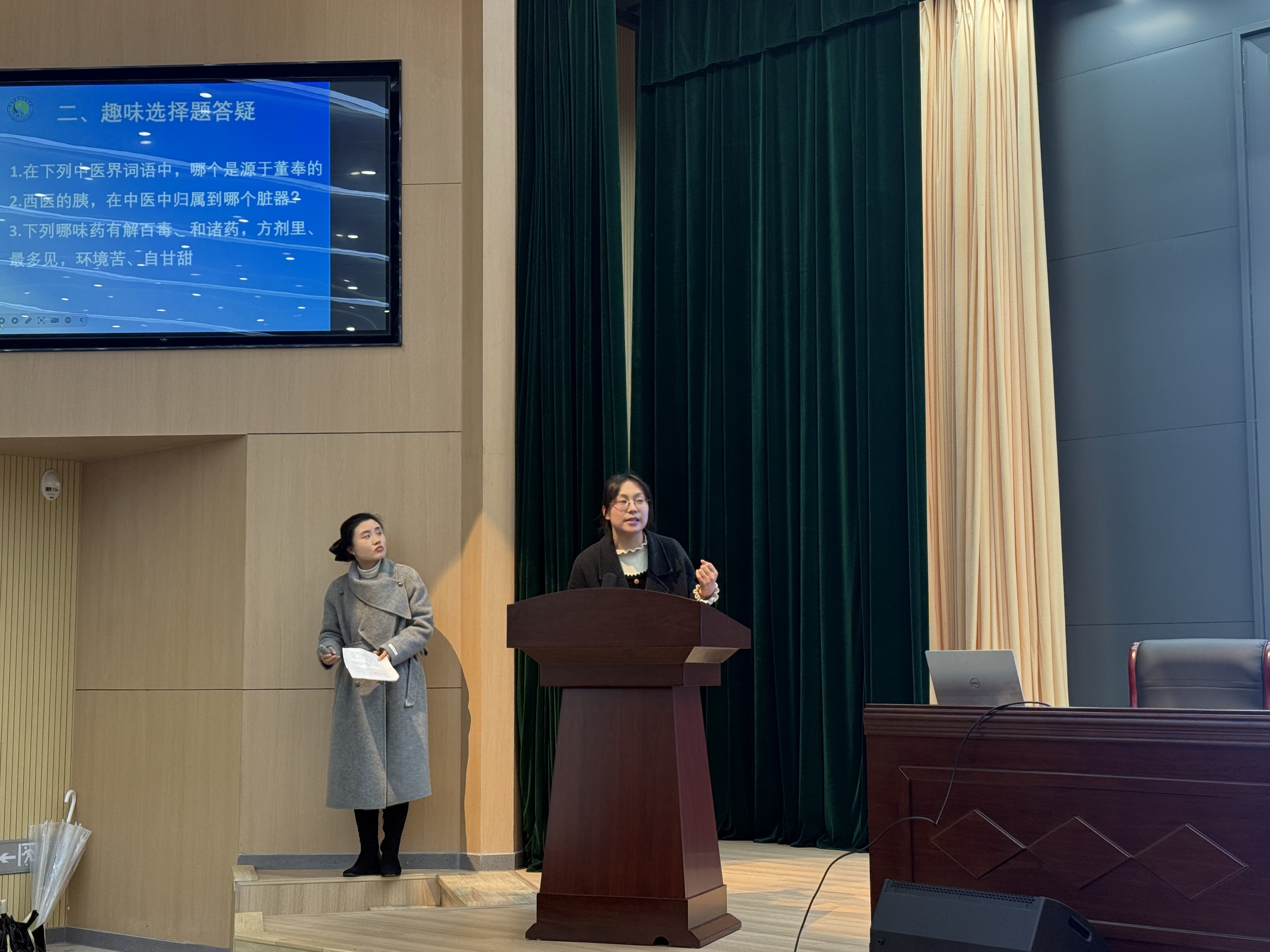 本次文化节由中药教研室联合俞秀教授策划,在多方指导与支持下,打破课堂边界,设置了猜谜、竞答、成语接龙等趣味环节,将专业知识与娱乐相结合,让同学们在寓教于乐中领略中医药的独特韵味。